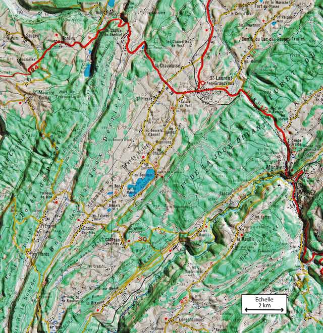 Extrait de la carte en relief IGN au 1/100 000 Haut-Jura