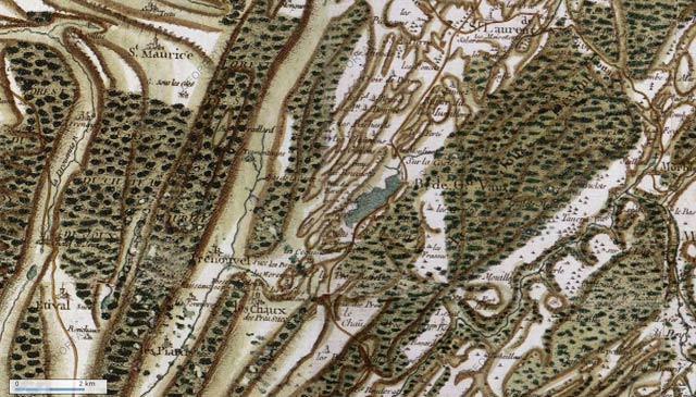carte de Cassini, partie sud du Grandvaux